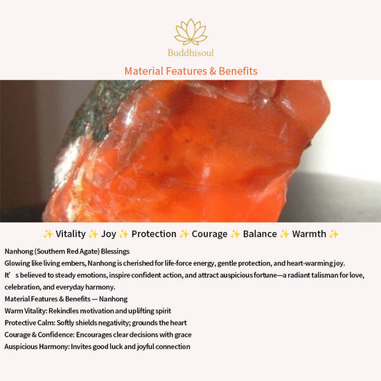 Southern Red Agate: Beloved for its warm cinnabar-red glow, it’s traditionally associated with vitality, courage, protection, abundance, and emotional grounding—a gemstone that warms the heart and steadies the spirit.