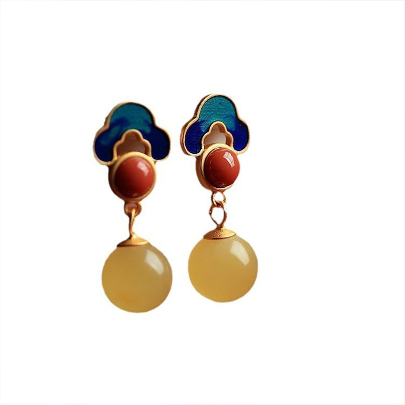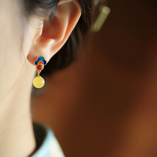 Handmade in small batches, these earrings pair genuine amber with vibrant cloisonné-style enamel, creating a luminous blend of temple-inspired beauty and everyday elegance. Lightweight, skin-friendly, and artfully detailed—perfect for mindful gifting or daily wear.