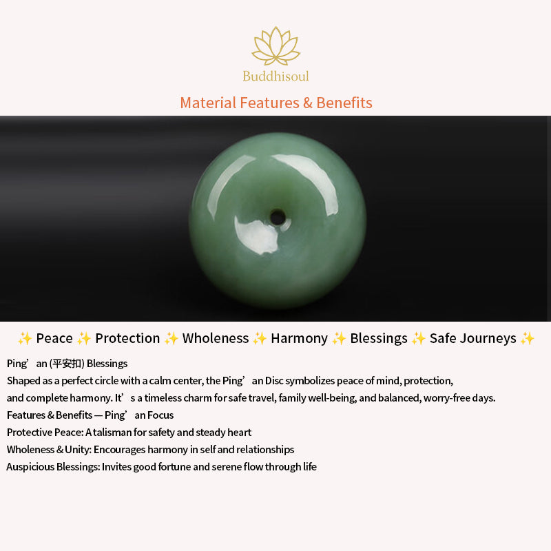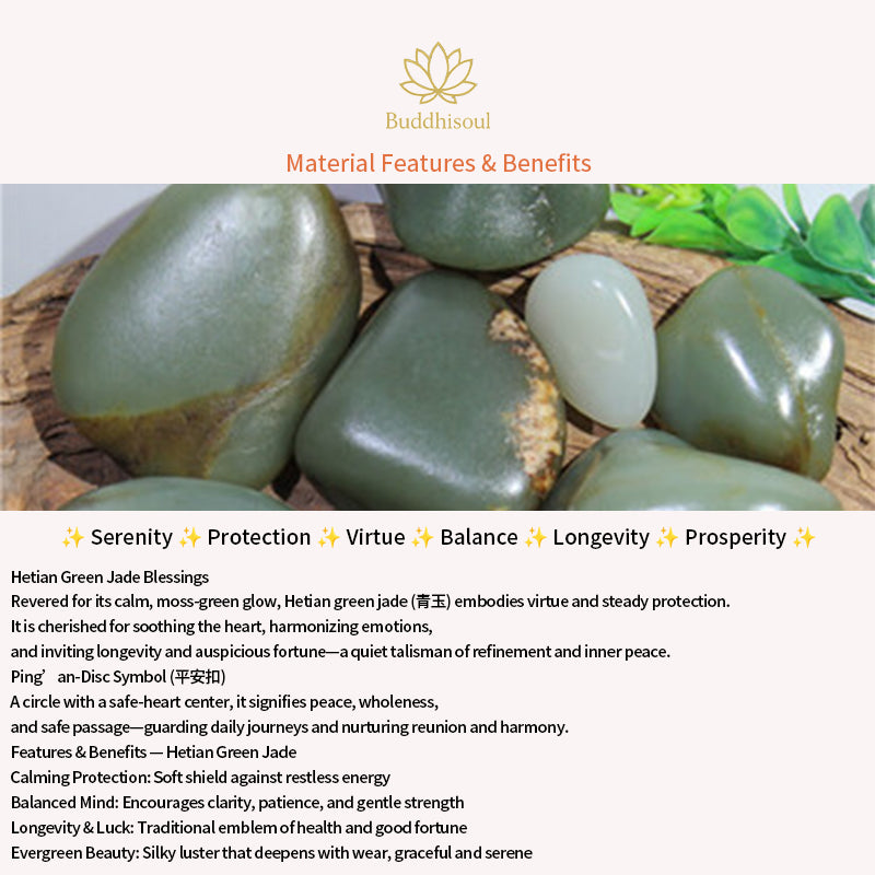Material: Genuine Hetian green jade (Ping An Kou disc)