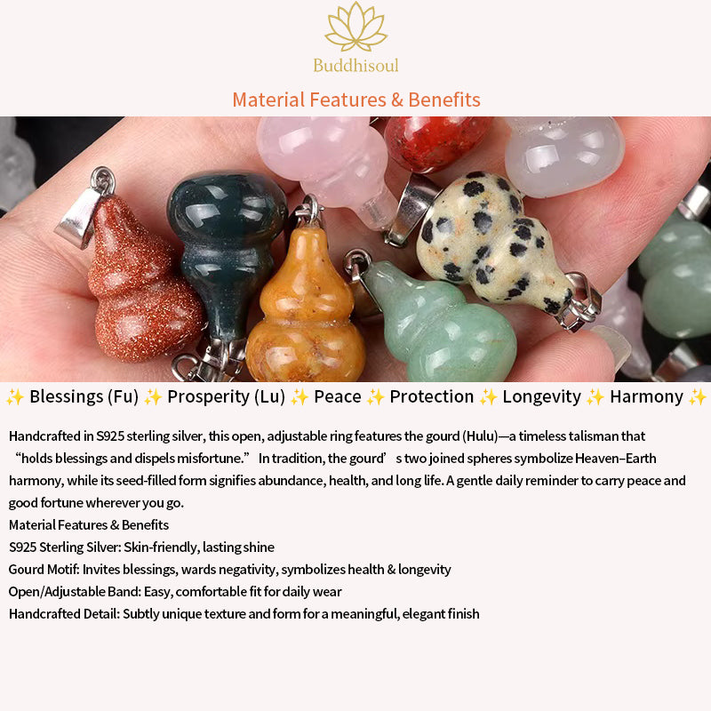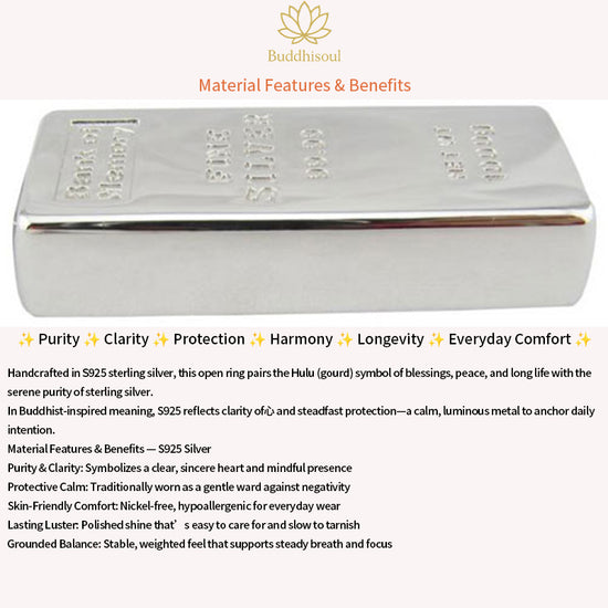 Handmade in luminous S925 sterling silver, this open, adjustable ring features the Hulu (gourd)—a timeless talisman of Fu–Lu–Ping An: blessings, prosperity, and peace. The gourd’s twin spheres symbolize Heaven–Earth harmony, while its seed-filled form signifies abundance, health, and long life. Elegant, meaningful, and easy to wear every day.