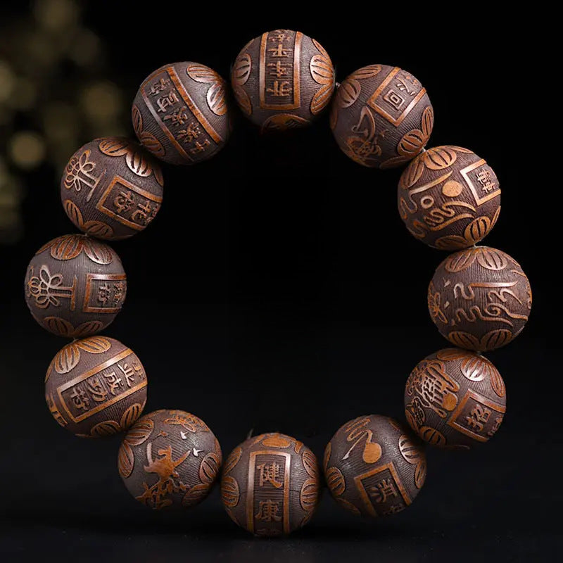 Embrace mindfulness, spiritual protection, and positive energy with the handcrafted BuddhiSoul Large Leaf Huali Rosewood Buddhist Prayer Beads.