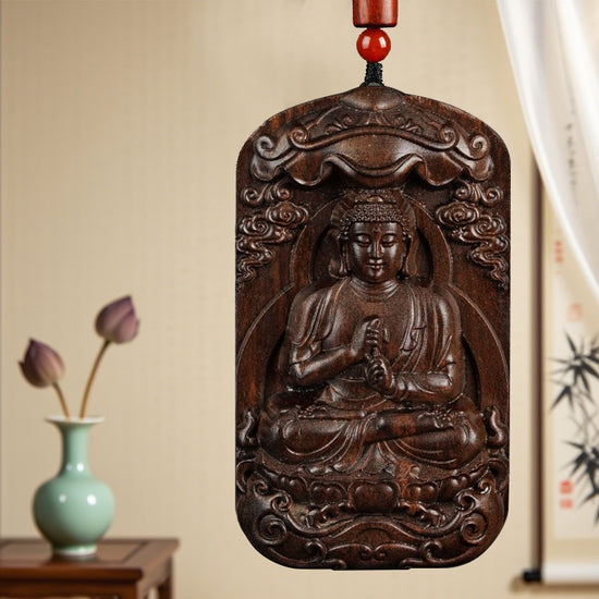 With its warm wooden texture and soothing aroma, this pendant is not only a meaningful spiritual talisman but also a timeless accessory suitable for everyday wear. It symbolizes peace, mindfulness, and protection, making it an ideal gift for yourself or loved ones seeking balance and inner strength.