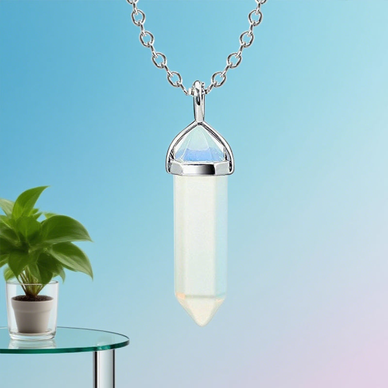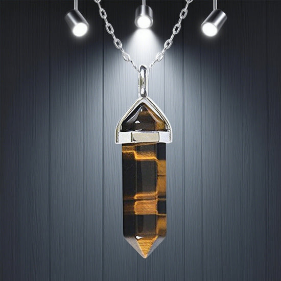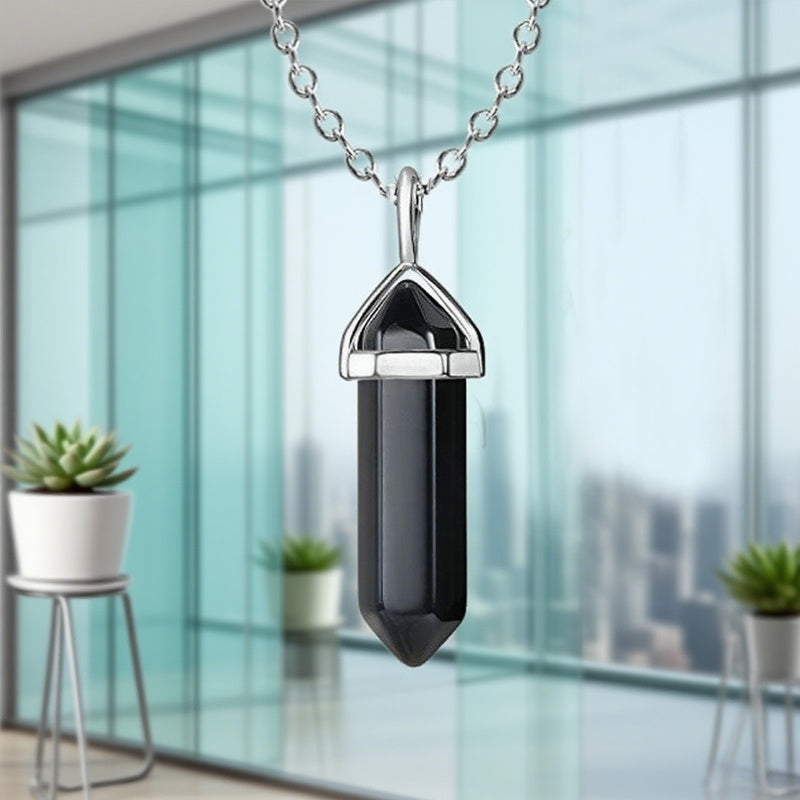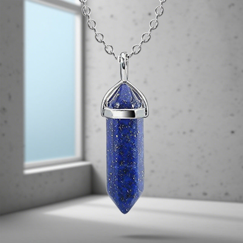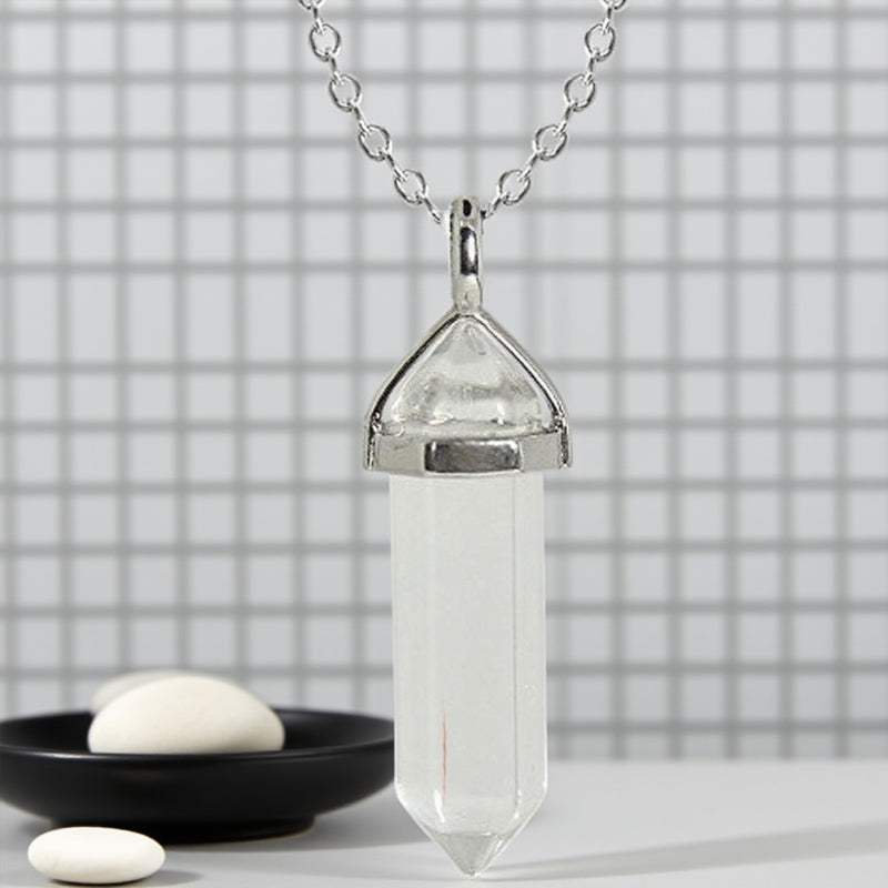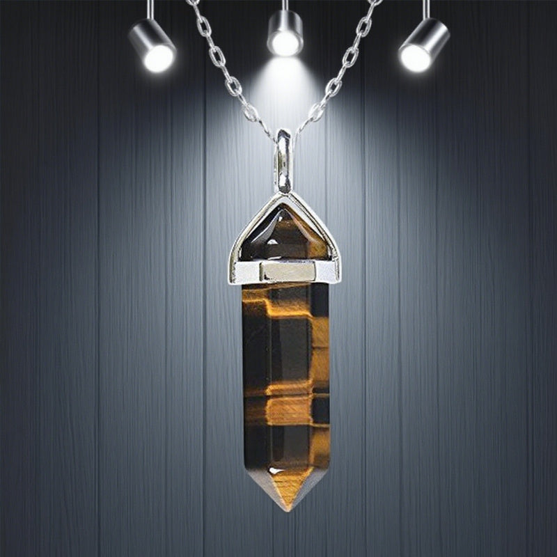 Buddhisoul Natural Gemstone Hexagonal Point Pendant Necklace