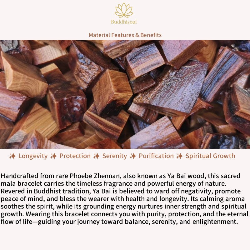 Ya Bai wood has long been cherished for its calming aroma and symbolic strength. In Buddhist tradition, it is believed to dispel negative energy, protect the wearer from harm, and promote clarity of mind. Wearing this bracelet encourages spiritual grounding, nurtures longevity, and enhances inner peace, making it an ideal companion for meditation, prayer, or daily wear.