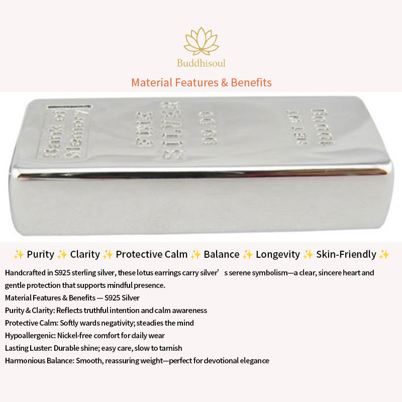 Handcrafted in S925 sterling silver with artisan enamel, these earrings celebrate the lotus—Buddhist symbol of purity, renewal, and serene strength. Rising unsullied from muddy waters, the lotus inspires compassion, clarity, and inner awakening; its broad leaf signifies shelter, wellbeing, and harmonious flow. A graceful tribute to mindful living and timeless elegance.
