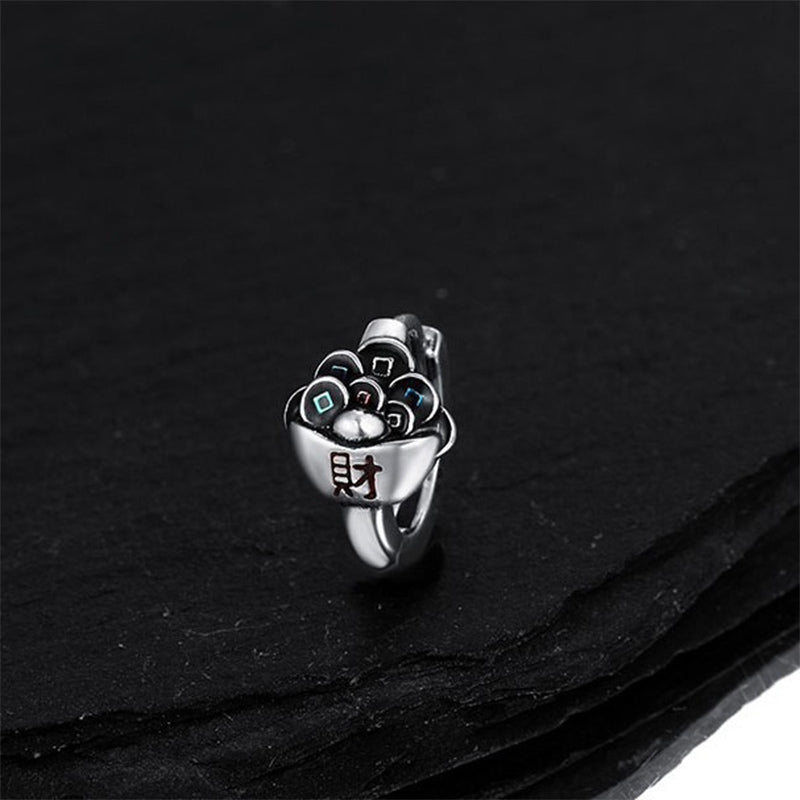 Handcrafted in solid S925 sterling silver, these earrings feature the classic Treasure Bowl (聚宝盆) motif—an emblem of abundance, protection, and auspicious fortune in daily life. Minimal yet meaningful, they’re designed for effortless wear and mindful intention.