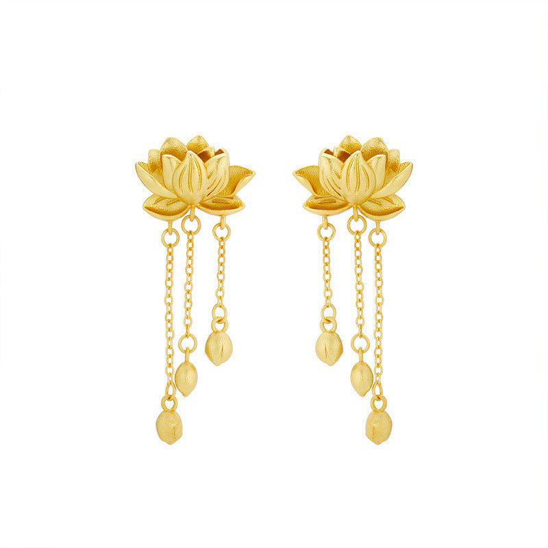 Buddhisoul Tassel Lotus Gold-Plated Earrings