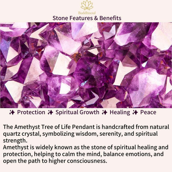 Amethyst promotes spiritual growth, relieves stress, and enhances intuition. It brings clarity, emotional balance, and inner calm.
