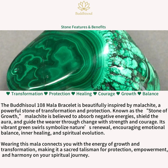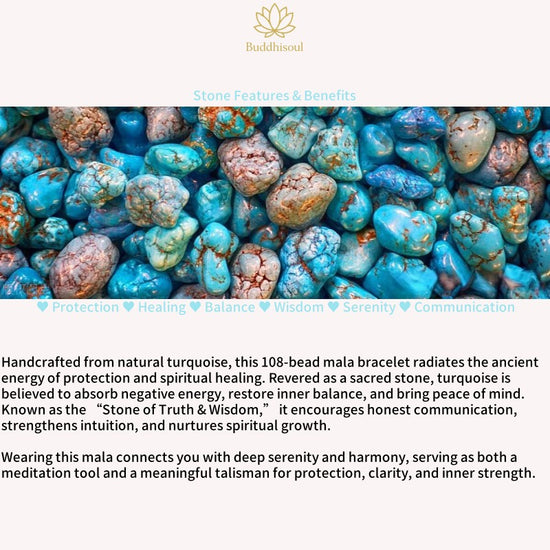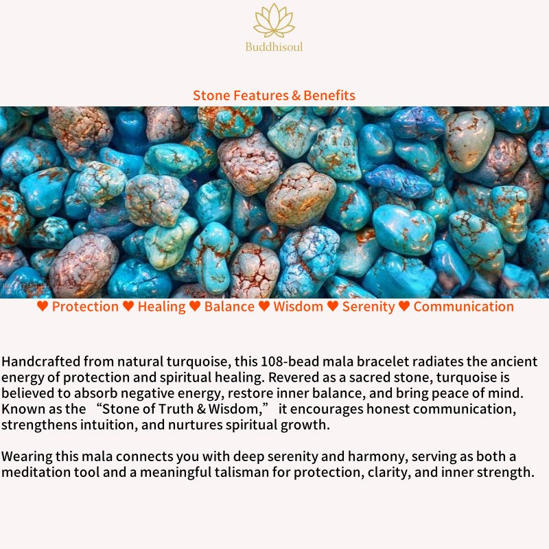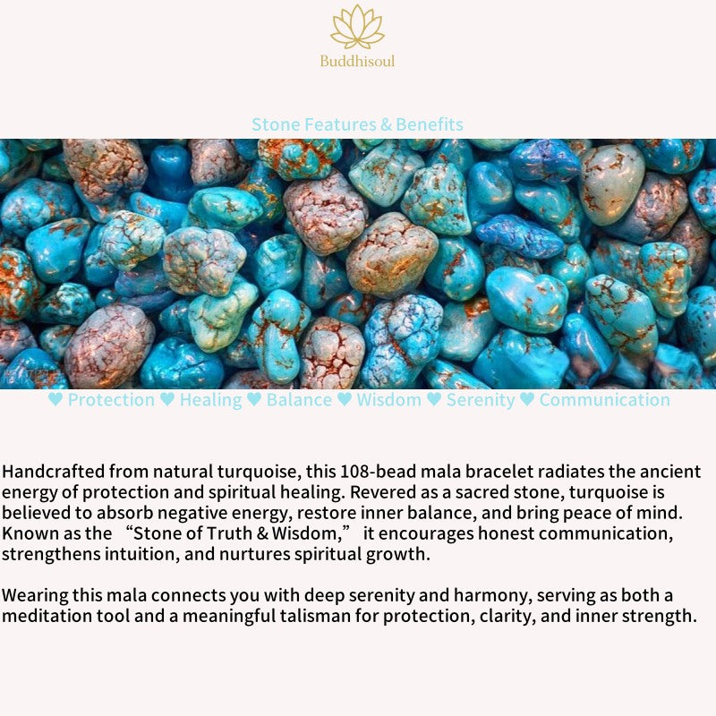The Buddhisoul Turquoise & Malachite Tibetan 108 Mala Beads Bracelet is a handcrafted spiritual accessory designed for meditation, mindfulness, and daily wear. Made from natural turquoise and malachite, each bead carries deep symbolic meaning and healing energy.
