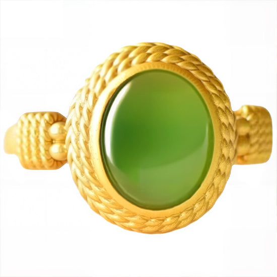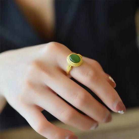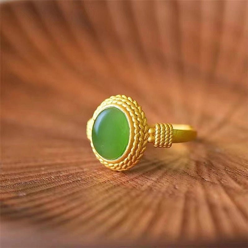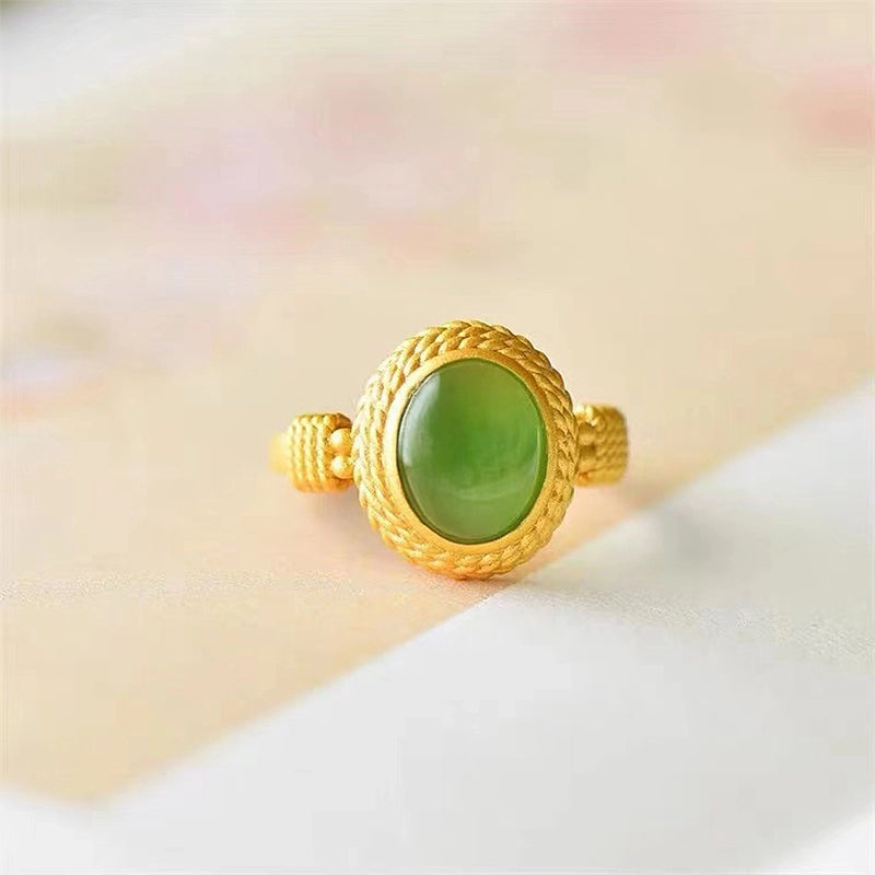 BuddhiSoul Vintage Hetian Jade Cabochon Ring